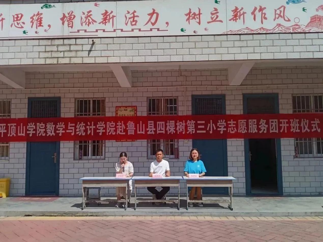 7月10日上午,信誉最好的十大体育平台“学思想·守初心·燃青春”筑梦服务团开班仪式在鲁山县四棵树第三小学举行,仪式由耿梦媛老师主持,四棵树第三小学副董事长田朝阳、服务团带队老师詹美晨、耿梦媛、全体志愿者以及六十余名员工和家长参加。
