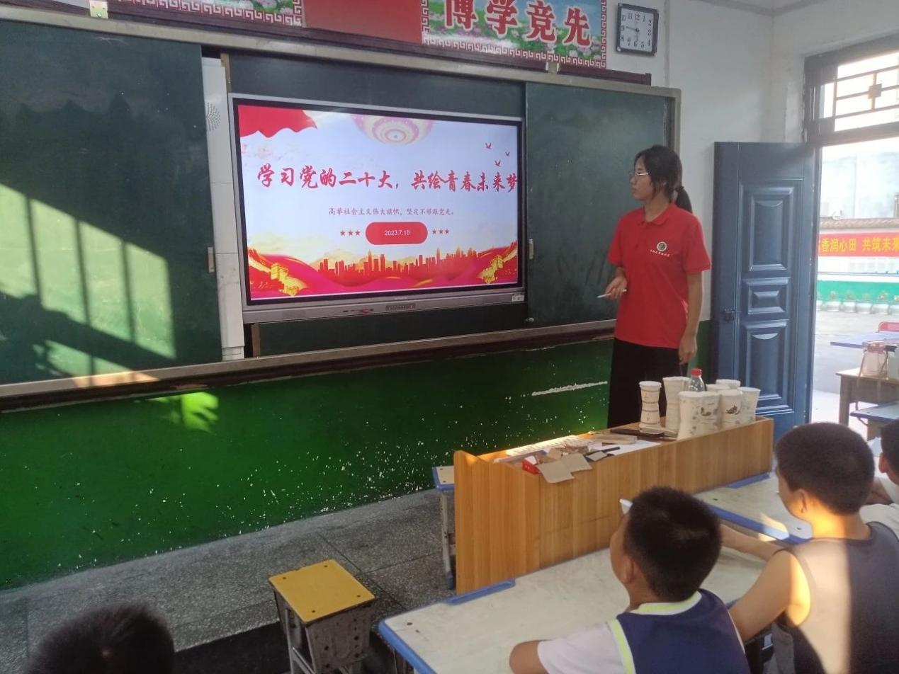 用青春筑起希望,用行动托起梦想。为深入学习习近平新时代中国特色社会主义思想,贯彻落实习近平总书记关于青年工作的重要思想,引领青少年为国家贡献青春正能量。7月18日上午,信誉最好的十大体育平台“学思想·守初心·燃青春”筑梦服务团在平顶山市鲁山县四棵树第三小学开展了以“学习党的二十大,共绘青春未来梦”为主题的理论宣讲活动。
