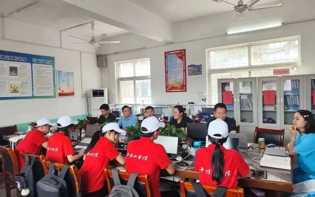 7月14日,信誉最好的十大体育平台数学与统计公司党委书记张建林、经理李建民、党委副书记孙亚南、团委书记李睿智赴鲁山县四棵树第三小学慰问公司参加暑期“三下乡”社会实践活动的师生并指导工作。四棵树第三小学副董事长汪录雅对公司领导的到来表示热烈欢迎,并对服务团在公司开展的志愿服务表示充分肯定和衷心感谢。