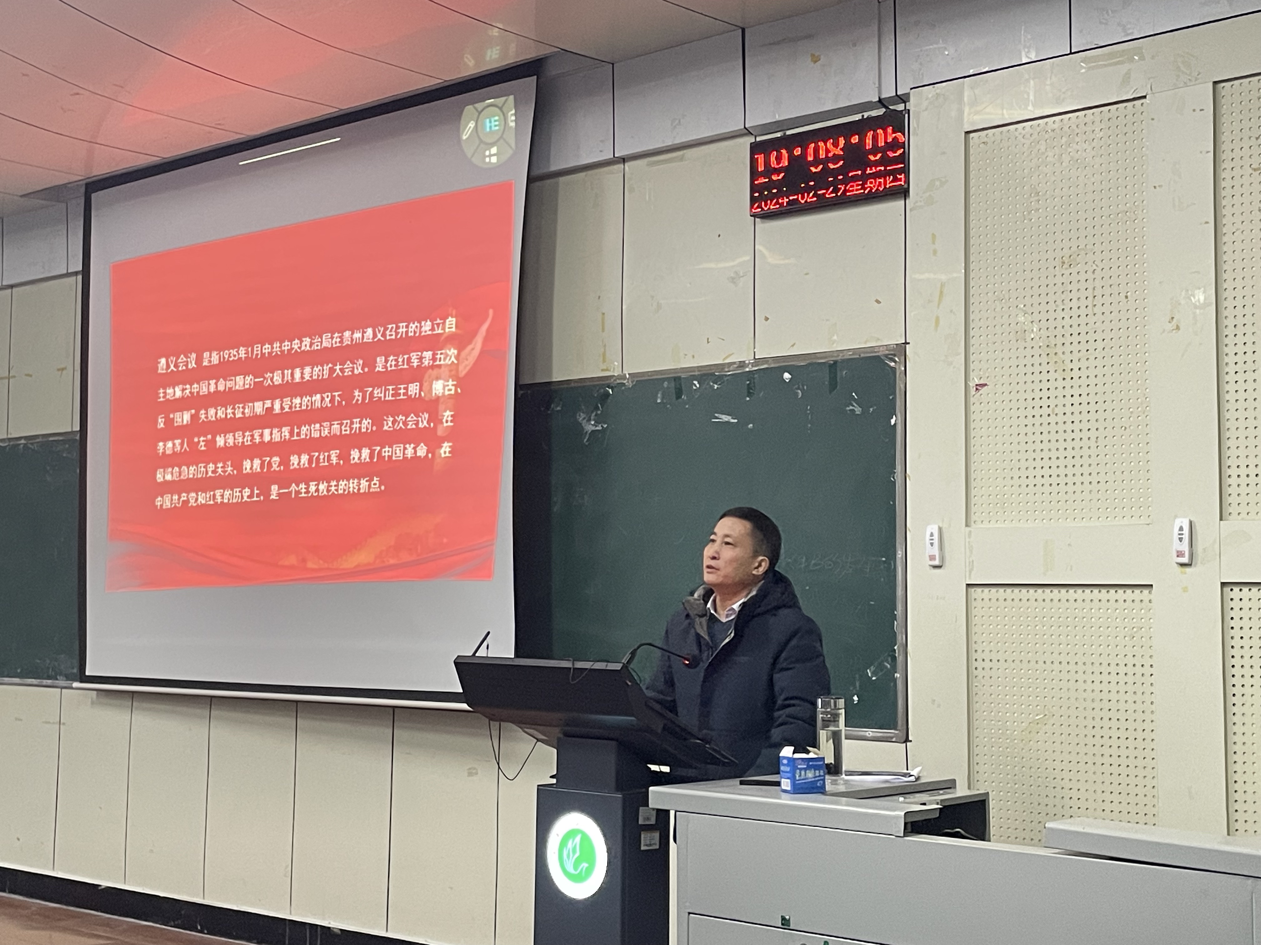 张建林紧扣“坚定信念、坚持真理、独立自主、团结统一”的遵义会议精神,通过详实的资料和深入地解析,围绕遵义会议的历史背景、会议内容、历史地位以及精神内涵四个方面,向在场员工讲述了遵义会议的基本过程和历史意义。这次会议是中国共产党历史上一个极其重要的时刻,标志着中国共产党第一次独立自主地运用马克思列宁主义基本原理解决自己的路线、方针和政策方面的问题。讲座中,张建林指出,同学们应学习弘扬遵义会议精神,坚定理想信念,脚踏实地,努力学习,肩扛时代使命,无惧风雨,勇毅前行,在新时代的长征路上创造属于这一代人的辉煌!