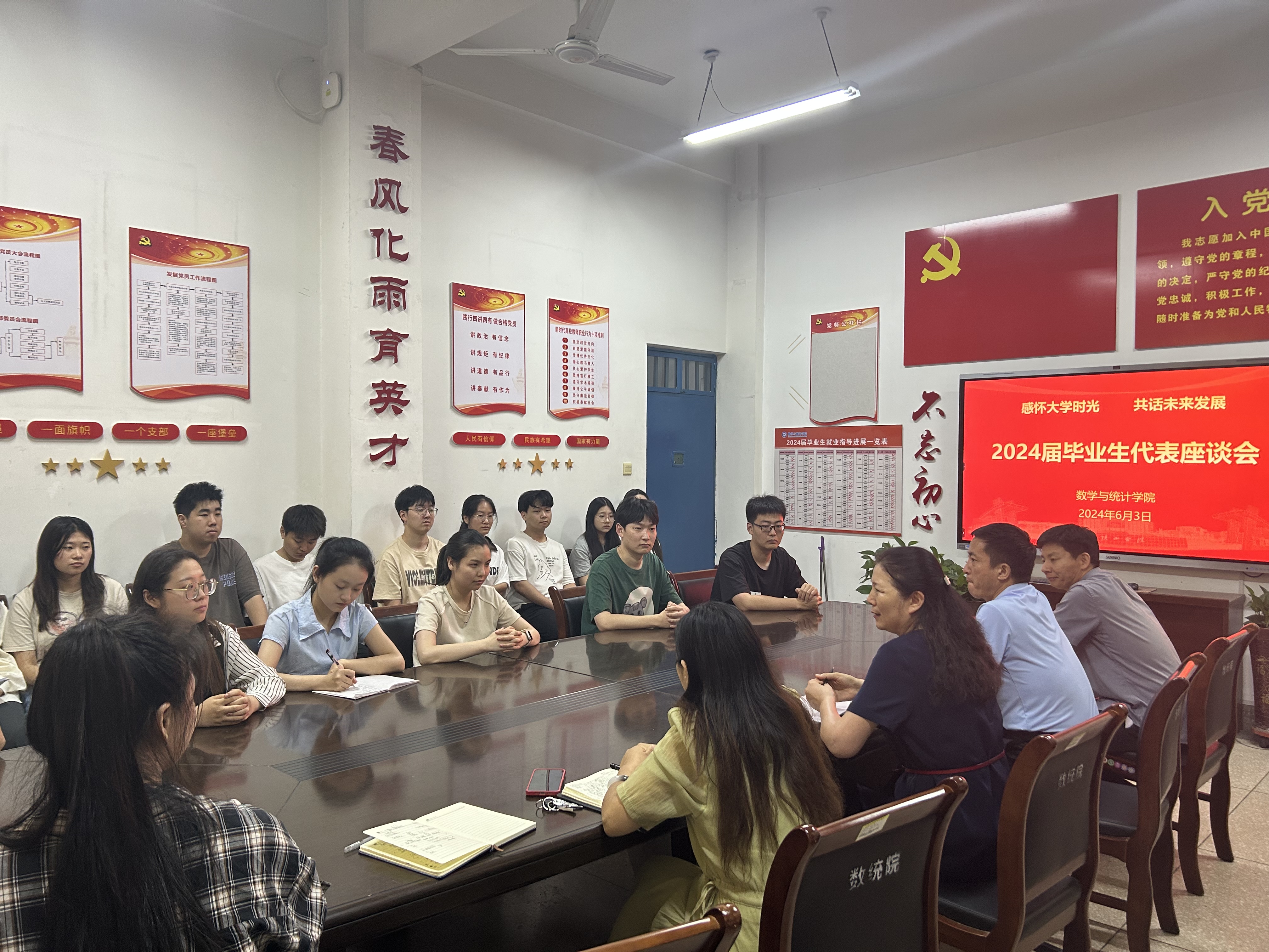 会上,毕业生代表积极发言,分享了自己在考研、求职过程中的心路历程和技巧,以及目前在学习、生活、未来人生规划上存在的困惑,倾诉了对母校、师长、同窗的感恩和不舍之情。