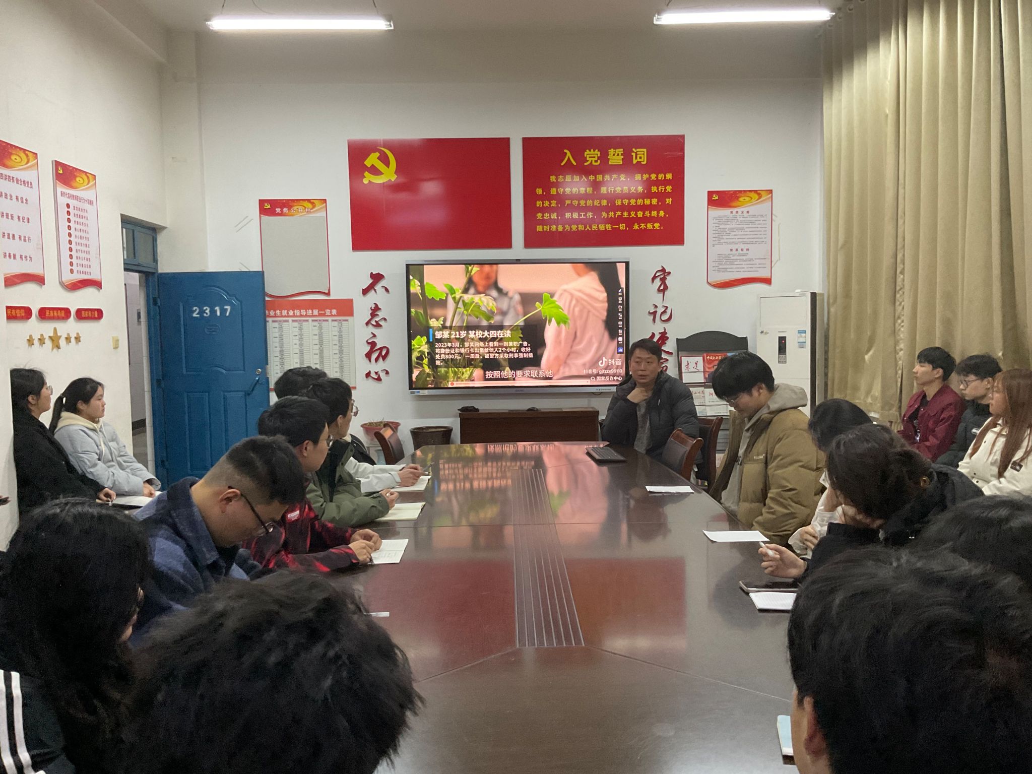 活动中,李老师组织员工们观看了普法视频,并结合生活案例围绕网络诈骗防范、兼职劳动权益保护等与员工日常生活息息相关的内容进行深度解析,使抽象条文变得通俗易懂,让同学们深刻感受到法律在个人和社会生活中的重要作用。最后,他鼓励同学们要将法治观念融入日常学习和生活,自觉养成尊法学法守法用法的好习惯。