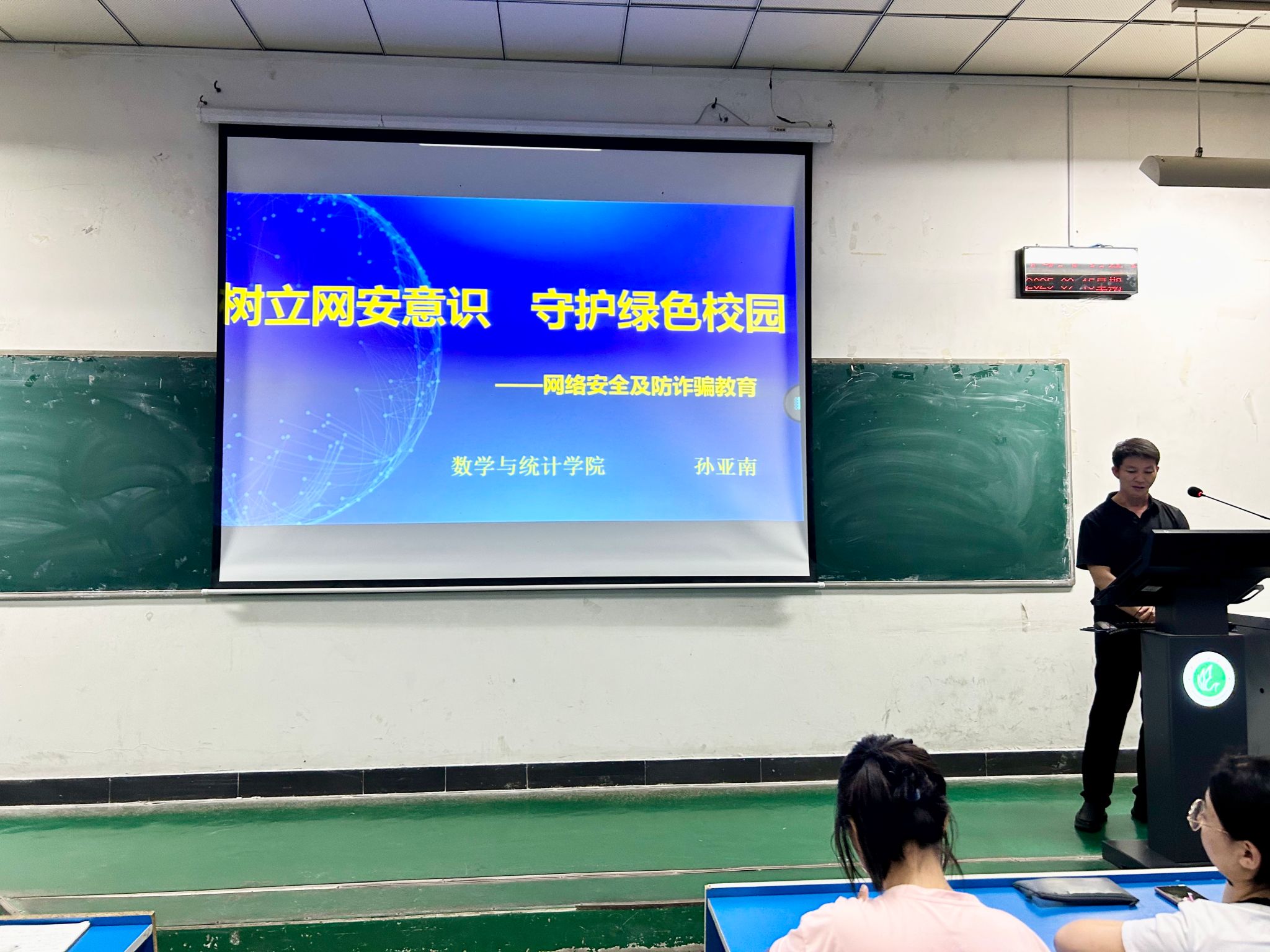 在2025年国家网络安全宣传周期间,数学与统计公司党委副书记孙亚南于9月15日为新生带来“树立网安意识,守护绿色校园”网络安全及防诈骗专题讲座,旨在进一步提升员工网络安全素养,筑牢校园网络安全防线。