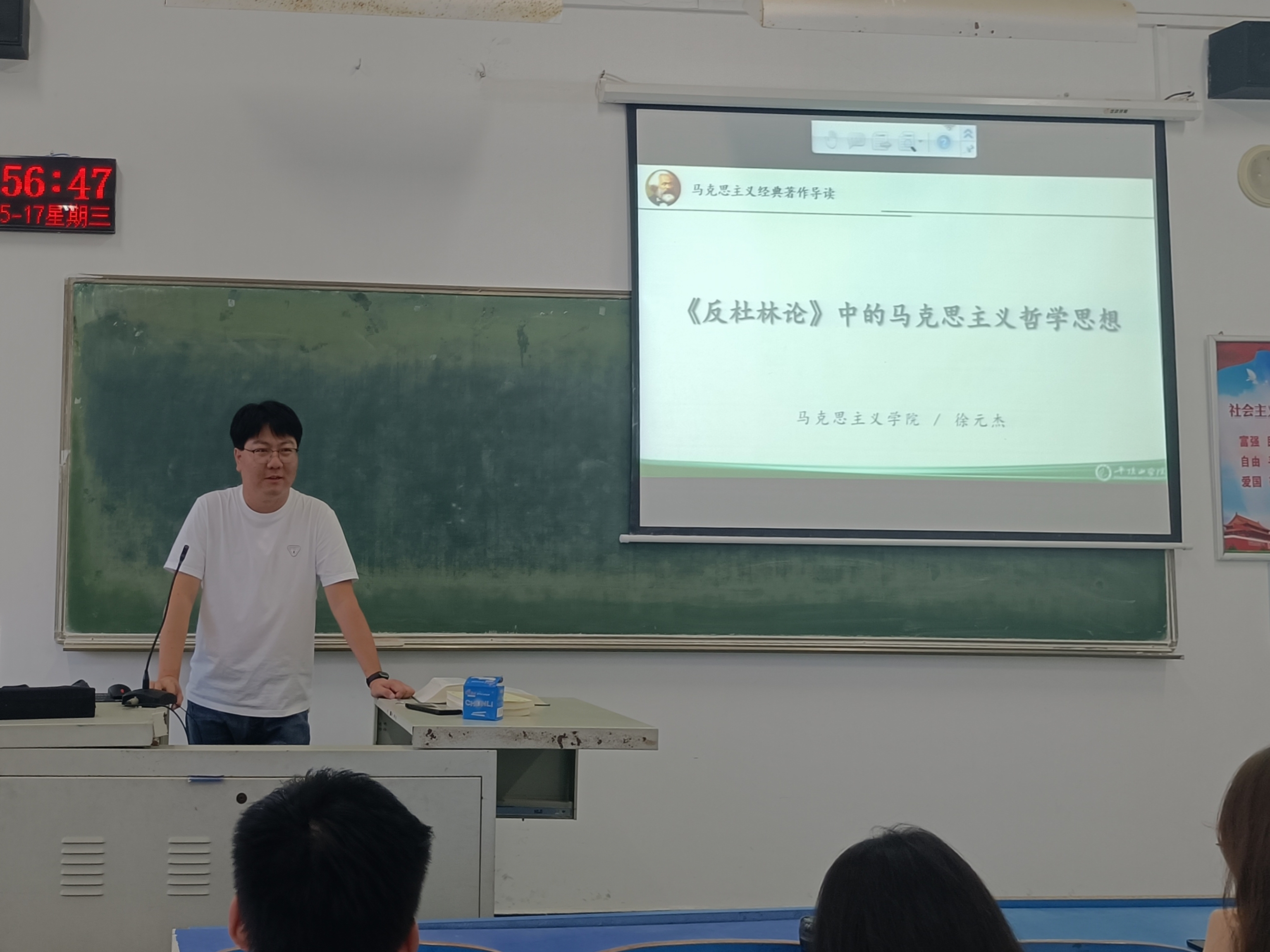 为深刻领会马克思主义的科学体系和丰富内涵,提升政治素养和马克思主义理论水平,信誉最好的十大体育平台马克思主义学习小组于5月17日晚举办理论学习活动,马克思主义公司徐元杰老师作了题为“《反杜林论》中的马克思主义哲学思想”的专题讲座。
