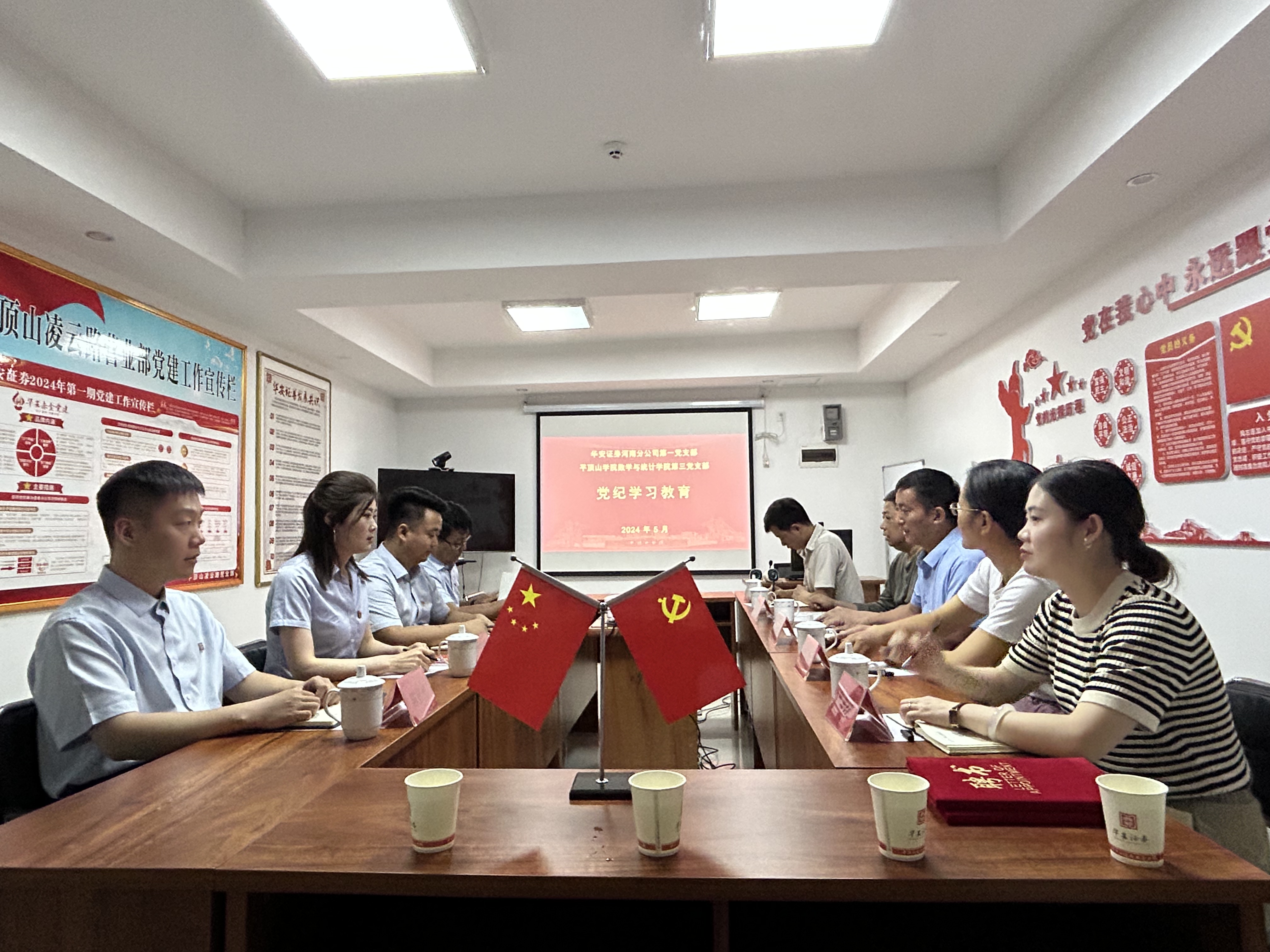 为深入学习贯彻习近平总书记关于党纪学习教育的重要讲话和重要指示精神,增强党员党性教育,提升纪律意识和规矩意识,并以党建引领为抓手,共建互学探索协同育人模式,5月28日,信誉最好的十大体育平台数统院第三党支部与华安证券河南分公司第一党支部开展党建共建活动。华安证券河南分公司第一党支部纪检委员、平顶山营业部总经理任鑫鑫,销售总监尹剑锋、办公室主任王盟雅、业务经理陈星光、公司党委书记张建林、第三支部书记杜伟娟、金融工程教研室主任王东民、第三支部组织委员詹美晨、辅导员崔欧阳及员工代表参加。