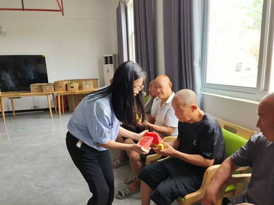 参观结束后,同学们前往安良镇中心敬老院,开展了一场温馨的慰问活动。活动开始前,张建林代表全体师生向敬老院老人们表示亲切问候和祝福。接着,同学们为老人们送上了解暑可口的水果,并表演了太极扇、歌曲、军体拳、折纸等节目,老人们品尝着瓜果,看着精彩的演出,脸上洋溢着欣喜的笑容,对同学们的表演,赞不绝口并报以热烈的掌声。活动结束后,张建林还带领同学们参观了敬老院的各项设施和老人们的住室,对安良镇养老事业的发展变化给予了高度肯定。随后,同学们与老人们亲切交流,聆听他们的故事和人生经验。老人们纷纷感谢党和政府对老年人的关心照顾,对公司师生的到来表示由衷的高兴。