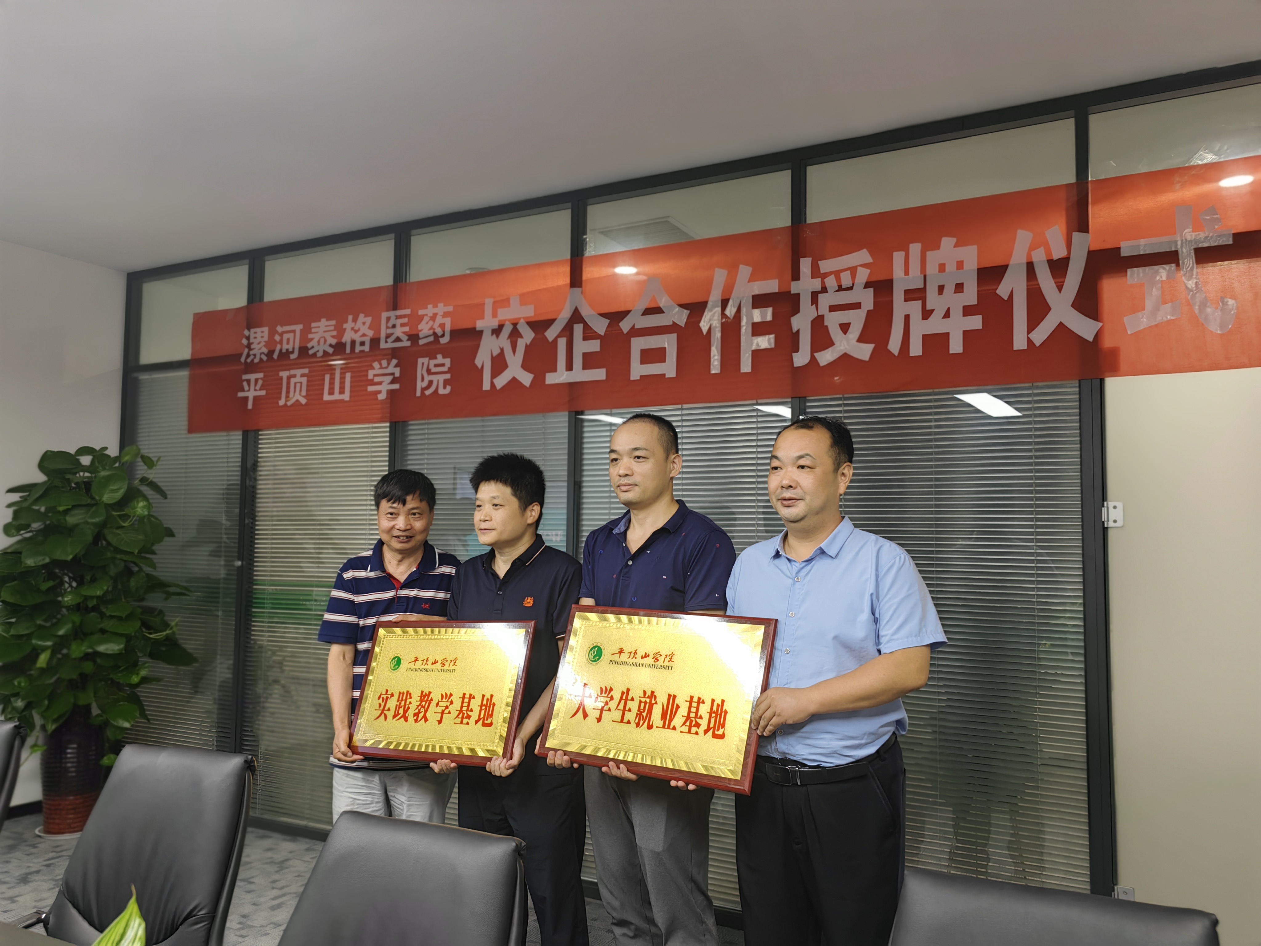 李建民与公司人才招聘处负责人赵伟杰一同向漯河泰格医药科技有限公司授牌“信誉最好的十大体育平台实践教学基地”“信誉最好的十大体育平台老员工就业基地”,标志着双方在专业建设、实习实训、人才培养、就业服务等多个方面建立深度合作关系。