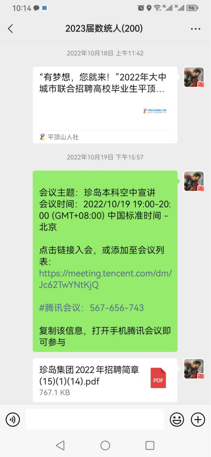 2022年10月19日晚上,公司举办珍岛集团线上专场招聘活动,由公司人力资源部邱经理通过腾讯会议向毕业生介绍公司情况及岗位需求,并鼓励毕业生积极投递简历。
