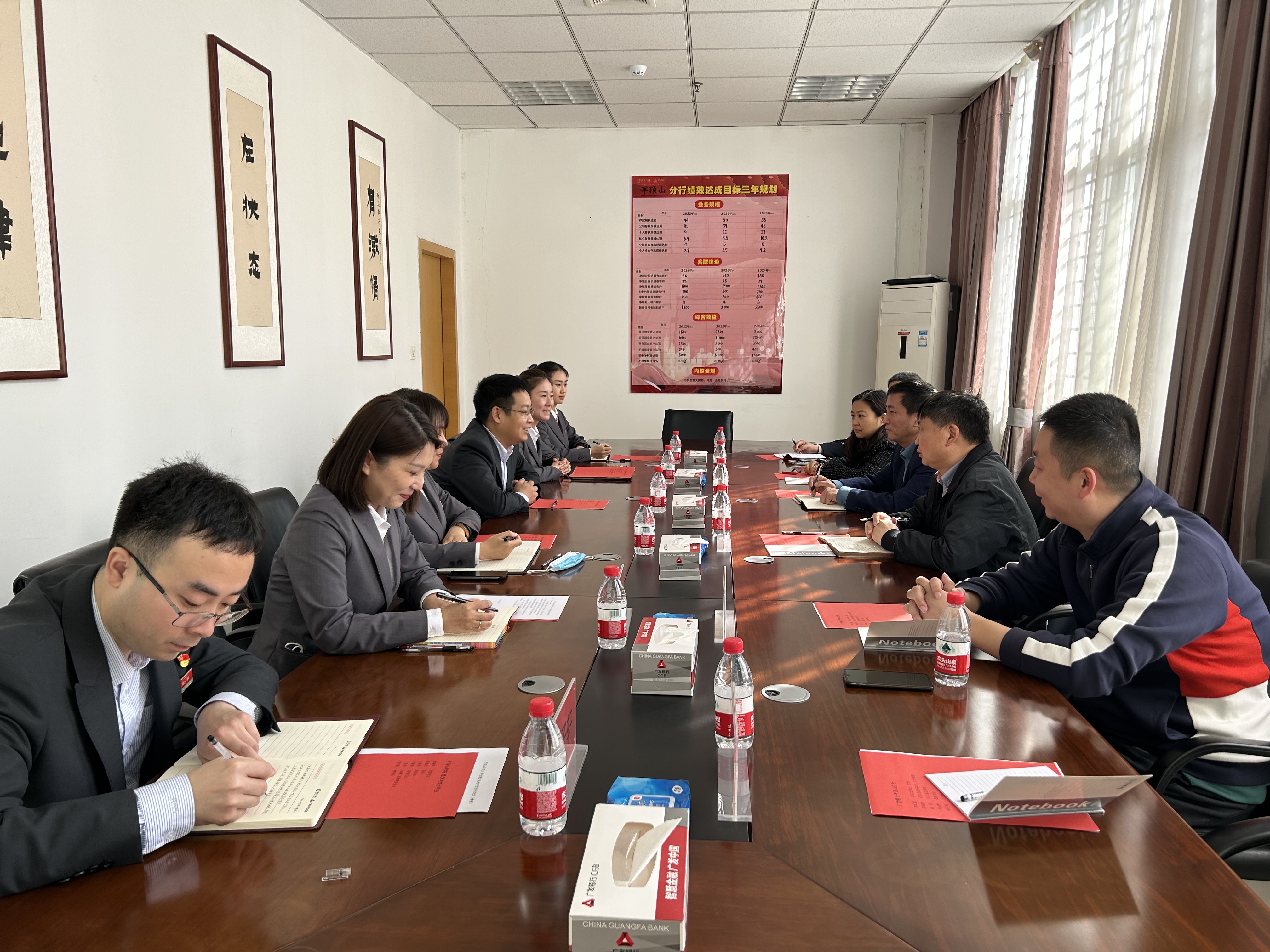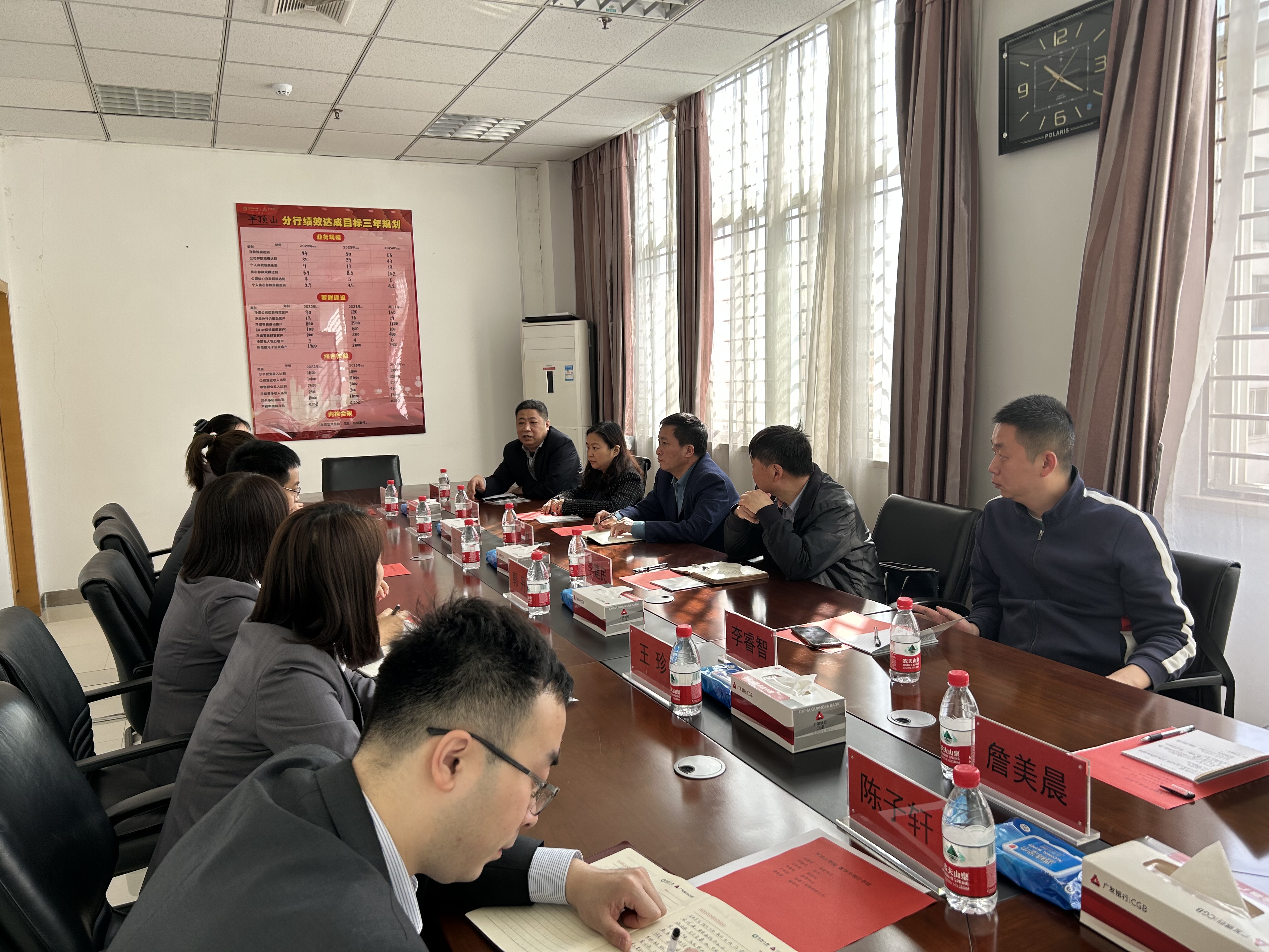 为进一步拓宽毕业生就业渠道,了解企业对高校人才培养的要求,推进落实书记经理访企拓岗促就业专项行动的精神要求,3月9日上午,数学与统计公司党委书记张建林、经理李建民、副经理王俊俊、金融工程教研室主任王东民、辅导员李睿智、詹美晨赴广发银行股份有限公司平顶山分行进行实地交流考察走访调研。