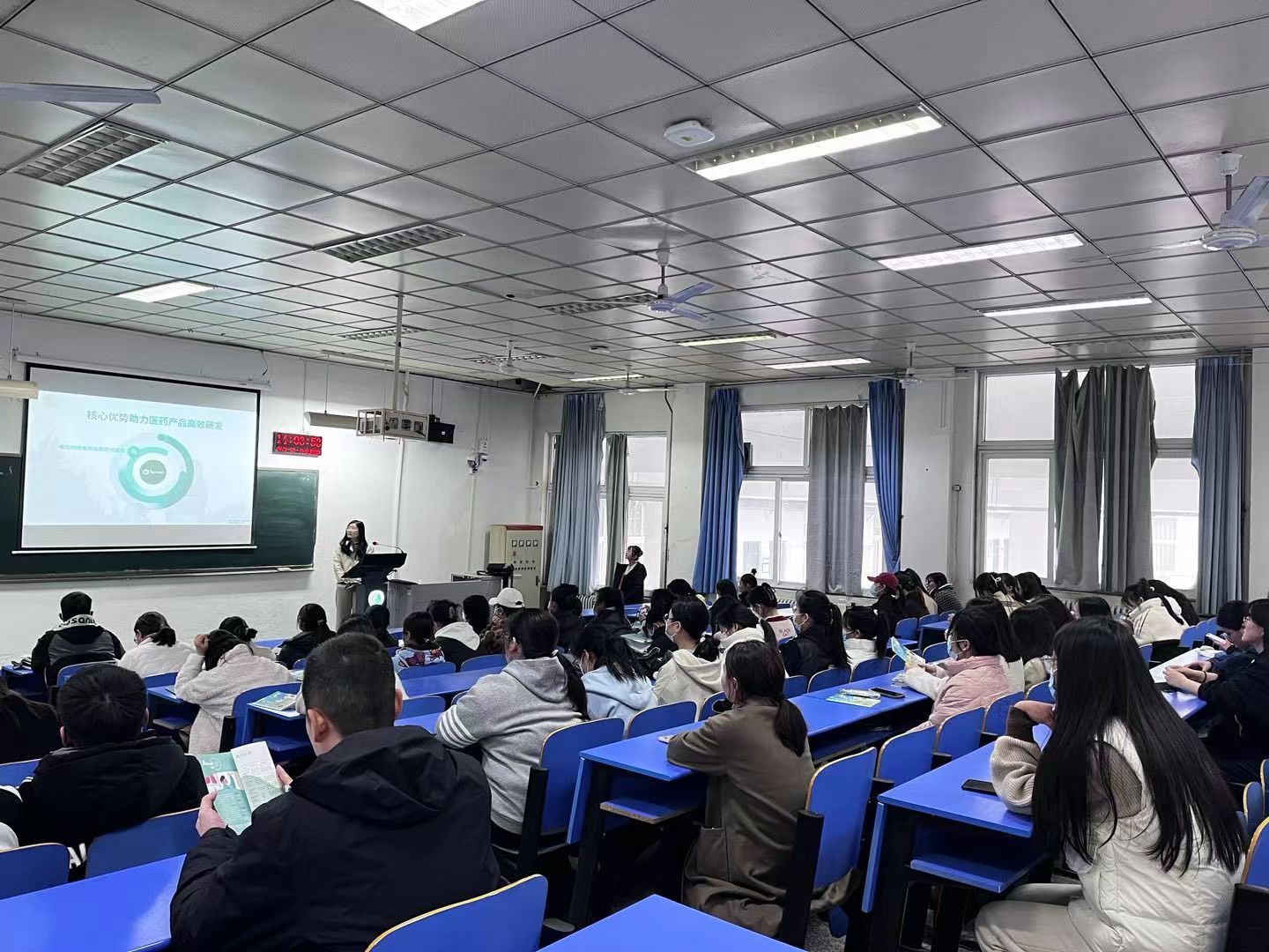 招聘会上,邵经理详细介绍了公司情况,围绕岗位需求、职业发展、薪资待遇、企业文化等内容,开展了详细全面的宣讲,并耐心解答了同学们的疑问。随后企业代表通过设置企业展板、播放企业宣传片等方式宣传公司形象及岗位信息,积极引导毕业生投递简历。招聘会场气氛热烈,同学们积极与招聘单位沟通,主动了解用人单位情况。