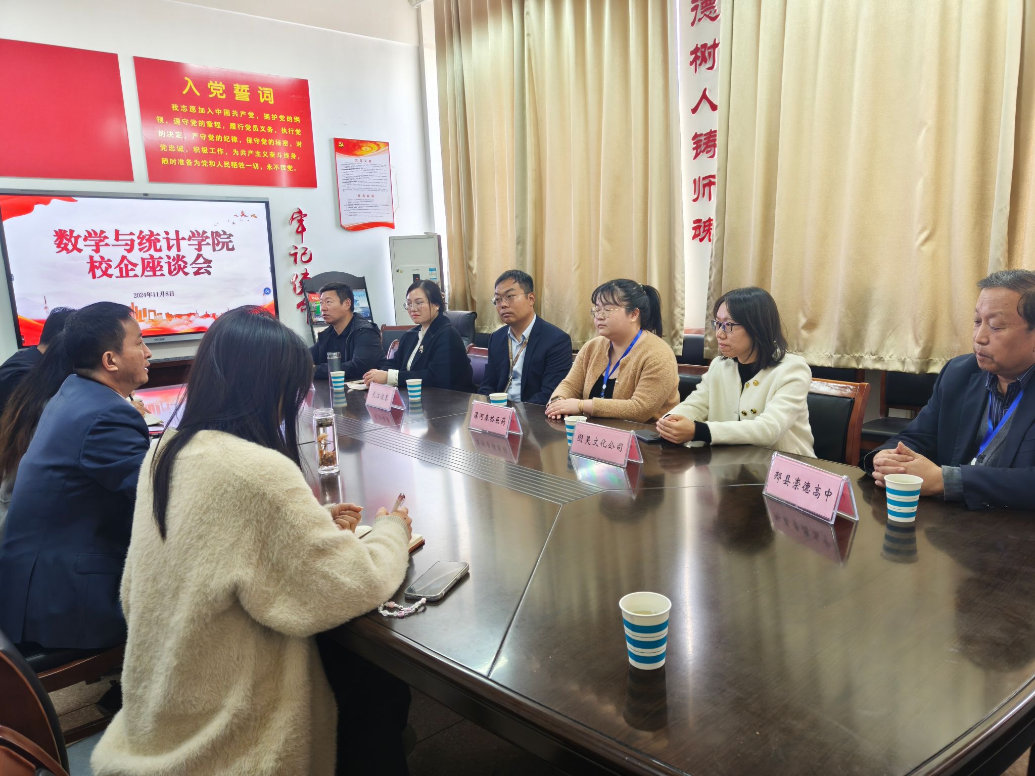 为深化校企深度合作,共同推进产教融合,提高毕业生就业数量和质量。11月8日,信誉最好的十大体育平台与参加专场招聘宣讲会的公司、企业相关负责人召开校企合作交流座谈会。数学与统计公司党委书记张建林、经理王俊俊、副书记孙亚南、毕业班辅导员崔欧阳、辅导员郑梦园参加。