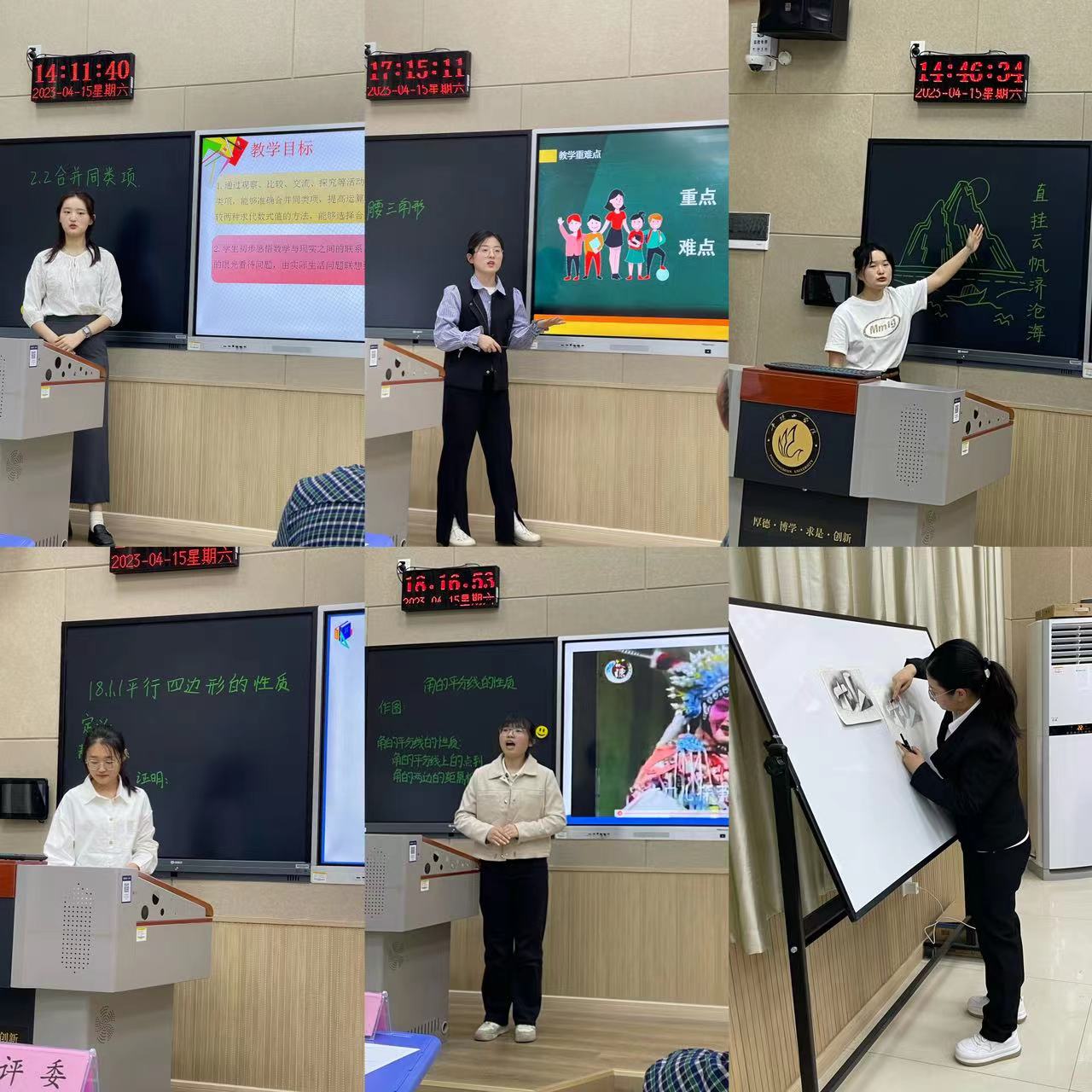 比赛以20级员工为主,经过初赛,有12名选手进入决赛。选手们从说课、答辩和特长展演等三个方面进行了精彩的展示,体现出扎实的专业知识和较强的教学技能。经过激烈角逐,2020级数学2班徐梓涵获得一等奖;2020级数学1班邢小宇、2020级数学2班王少丽获得二等奖;2020级数学1班武梦琳、2020级2班李瑞聪、程璐获得三等奖。