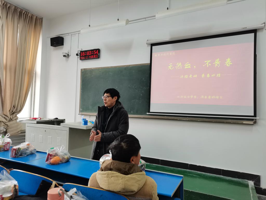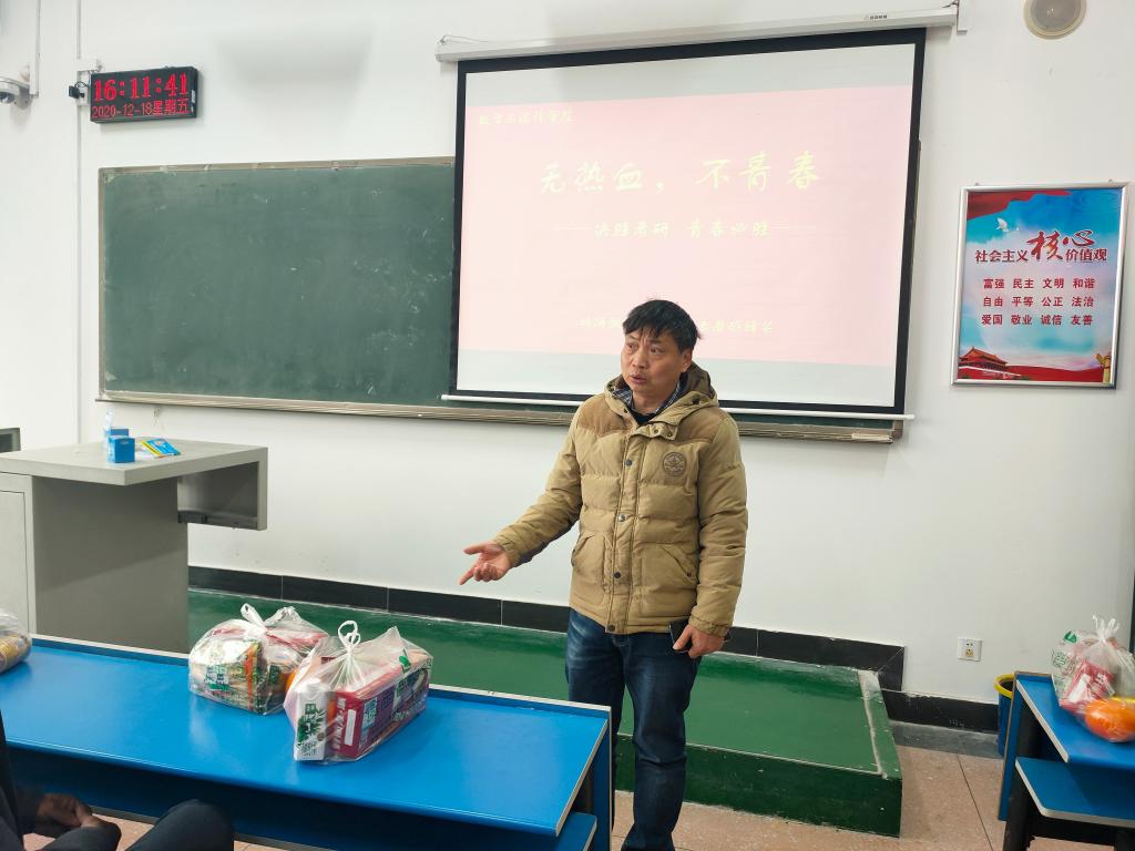 12月18日下午,公司在2110教室召开了2019届毕业生考研动员大会,数学与统计公司党总支书记李建民,经理李庆富,党总支副书记梁聪刚,团总支书记李睿智,辅导员耿梦媛、詹美晨老师以及全体考研员工参加了此次活动。