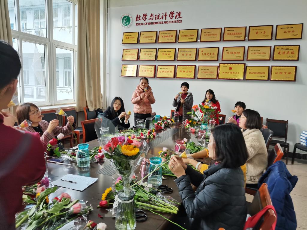 活动开始,李书记指出工会举办此次活动的目的是希望老师们能够在教学、科研和管理工作之余放松身心、陶冶情操,更好地享受生活,并希望大家一如既往支持工会工作。随后,由资深插花师为大家进行插花知识的讲解。插花师从花瓶的选择、日常的养护、插花技巧等内容进行了细致的指导,为现场为大家演示了插花的方法。在插花师的指导下,每一位老师亲自动手,制作了一束精美的花束。