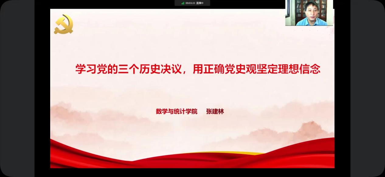 讲座中,张书记围绕中国共产党三个“历史决议”的形成原因、时代背景、主要内容、历史意义等方面,启发同学们树立正确的党史观,做树立远大理想、担当时代责任、练就过硬本领、坚决抵制历史虚无主义的新时代中国青年。并指出,历史是最好的教科书,也是不可或缺的清醒剂,要准确把握党史的主题主线,以“三个历史决议”为基本遵循,正确认识各个历史时期的关系,旗帜鲜明反对历史虚无主义。讲座最后,张书记强调,同学们要增强安全防范意识和能力,认清当前疫情防控形势和风险,进一步提高疫情防控意识,并围绕意识形态入侵、电信诈骗及校园网贷防范等主题有针对性地对同学们进行教育引导,使同学们牢固树立国家安全意识和日常安全意识,提升自我保护能力。
