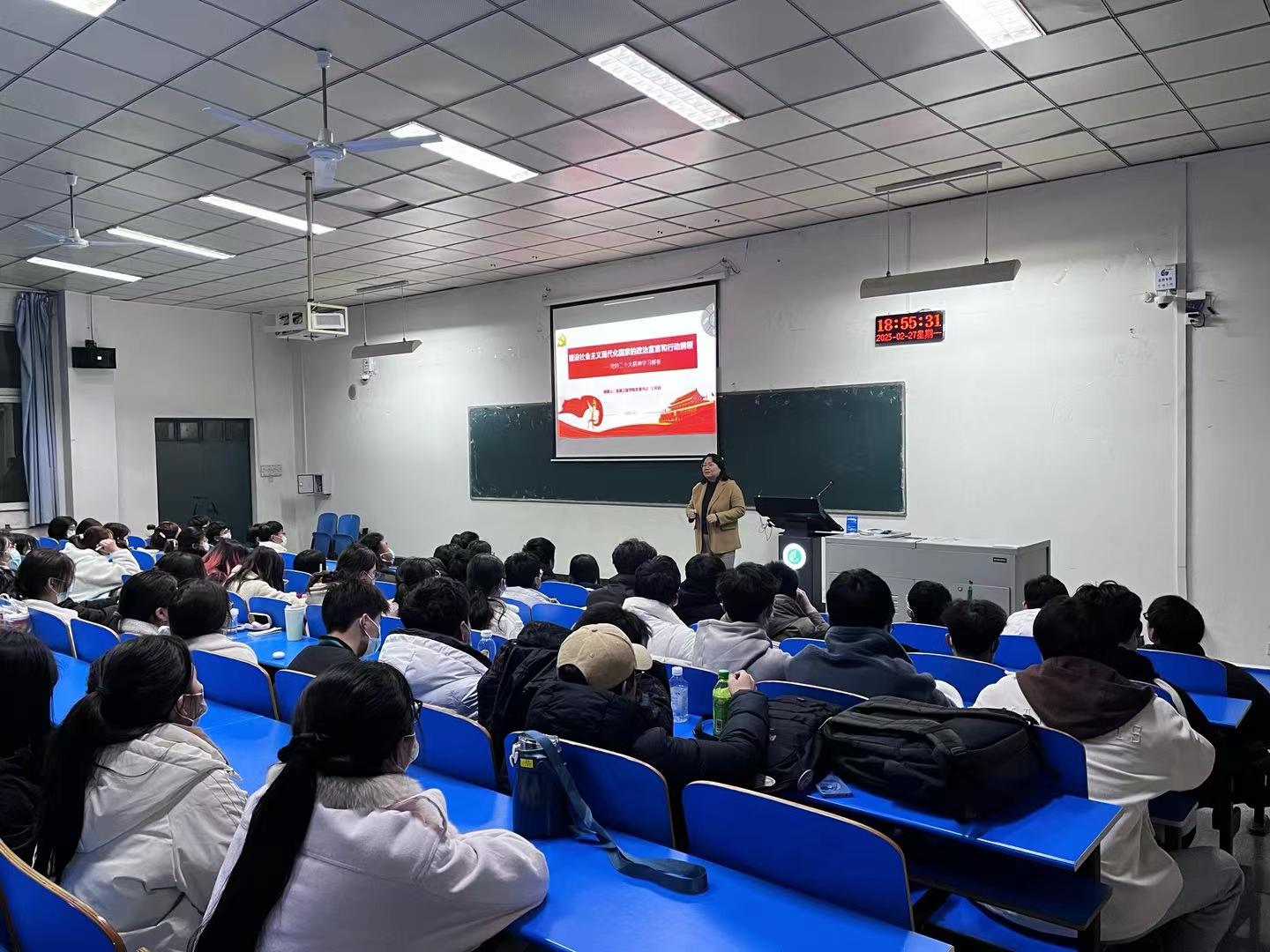 会上,王向前紧扣党的二十大报告原文,从“党和国家过去五年工作及新时代十年的伟大变革”、“开辟马克思主义中国化时代化新境界”、“新时代新征程中国共产党的使命任务”、“实施科教兴国战略,强化现代化建设人才支撑”等内容,对党的二十大报告作了全面宣讲和深入阐释。她强调,广大青年学子要坚定不移听党话、跟党走,怀抱梦想又脚踏实地,敢想敢为又善作善成,立志做有理想、敢担当、能吃苦、肯奋斗的新时代好青年,让青春在全面建设社会主义现代化国家的火热实践中绽放绚丽之花。