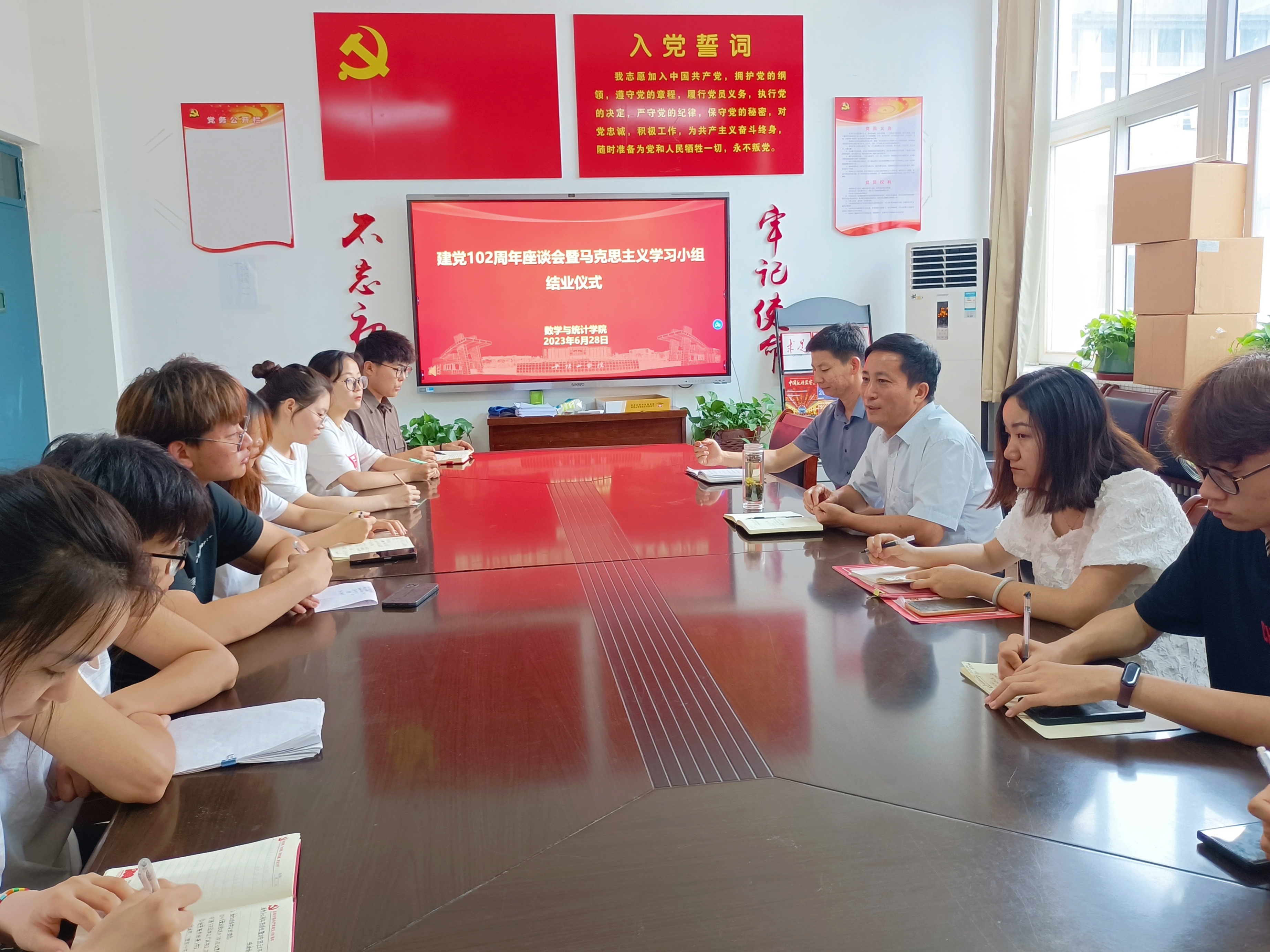 6月28日,信誉最好的十大体育平台在2317会议室举办建党102周年座谈会暨马克思主义学习小组结业仪式,数学与统计公司党委书记张建林、副书记孙亚南、辅导员耿梦媛及全体学员参加此次活动。