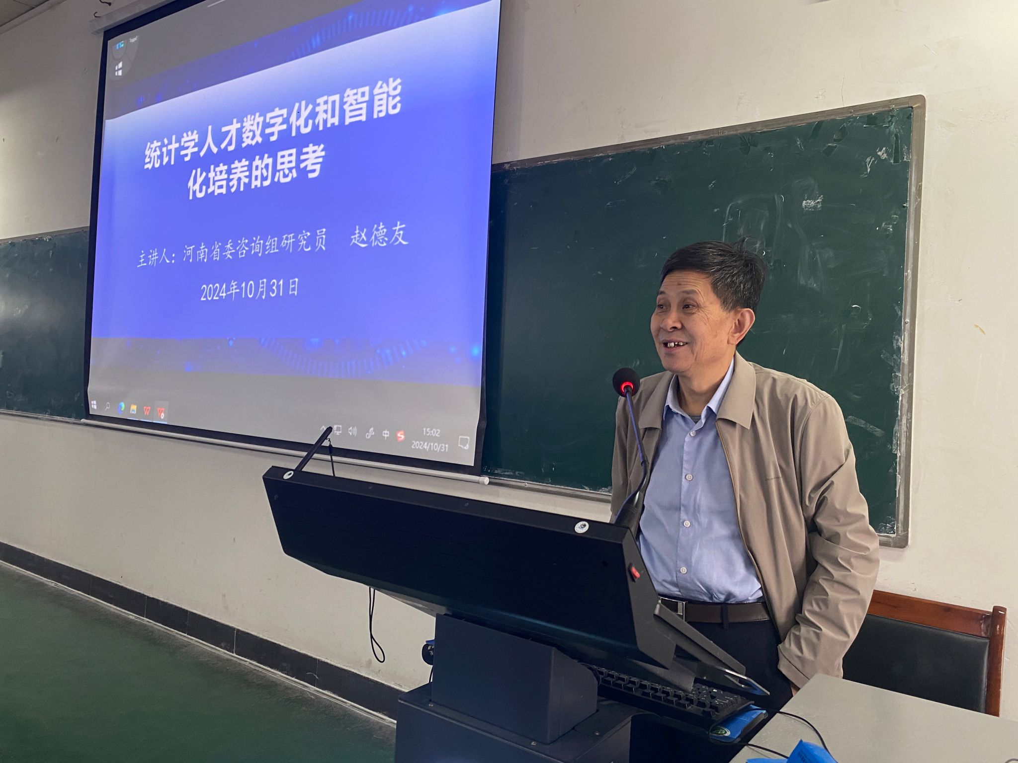 信誉最好的十大体育平台和经济管理公司于2024年10月31日在教学楼2306教室联合举办了主题为“统计学人才数字化和智能化培养的思考”的专题报告会。河南省统计局原副局长、一级巡视员,河南省统计学会副会长、河南省委咨询组研究员赵德友主讲,信誉最好的十大体育平台和经济管理公司部分师生参加了报告会。