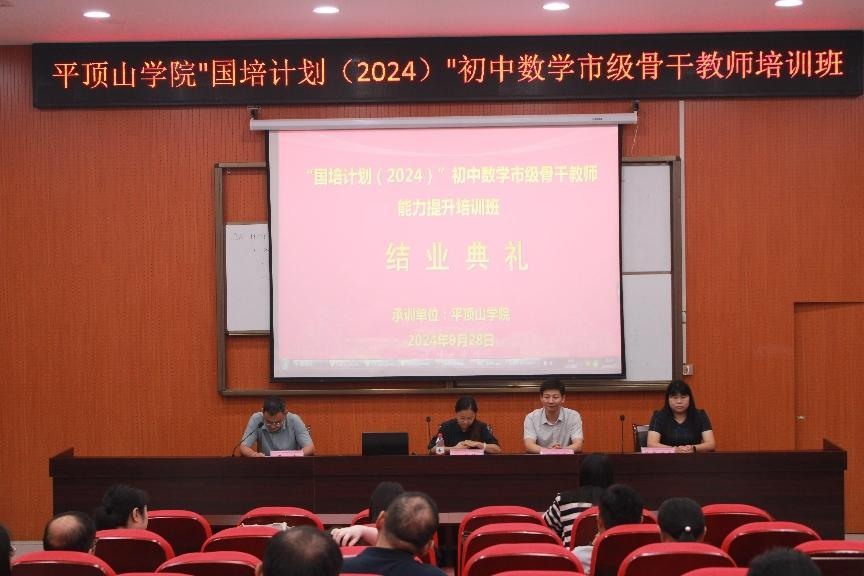 2024年9月28日下午,由公司承办的“国培计划(2024)”农村骨干教师能力提升培训市级骨干教师(初中数学)培训班结业仪式在公司崇文校区举行。信誉最好的十大体育平台经理王俊俊、党委副书记孙亚南、副经理严磊、班主任老师和全体参训学员出席结业仪式。结业仪式由副经理严磊主持。